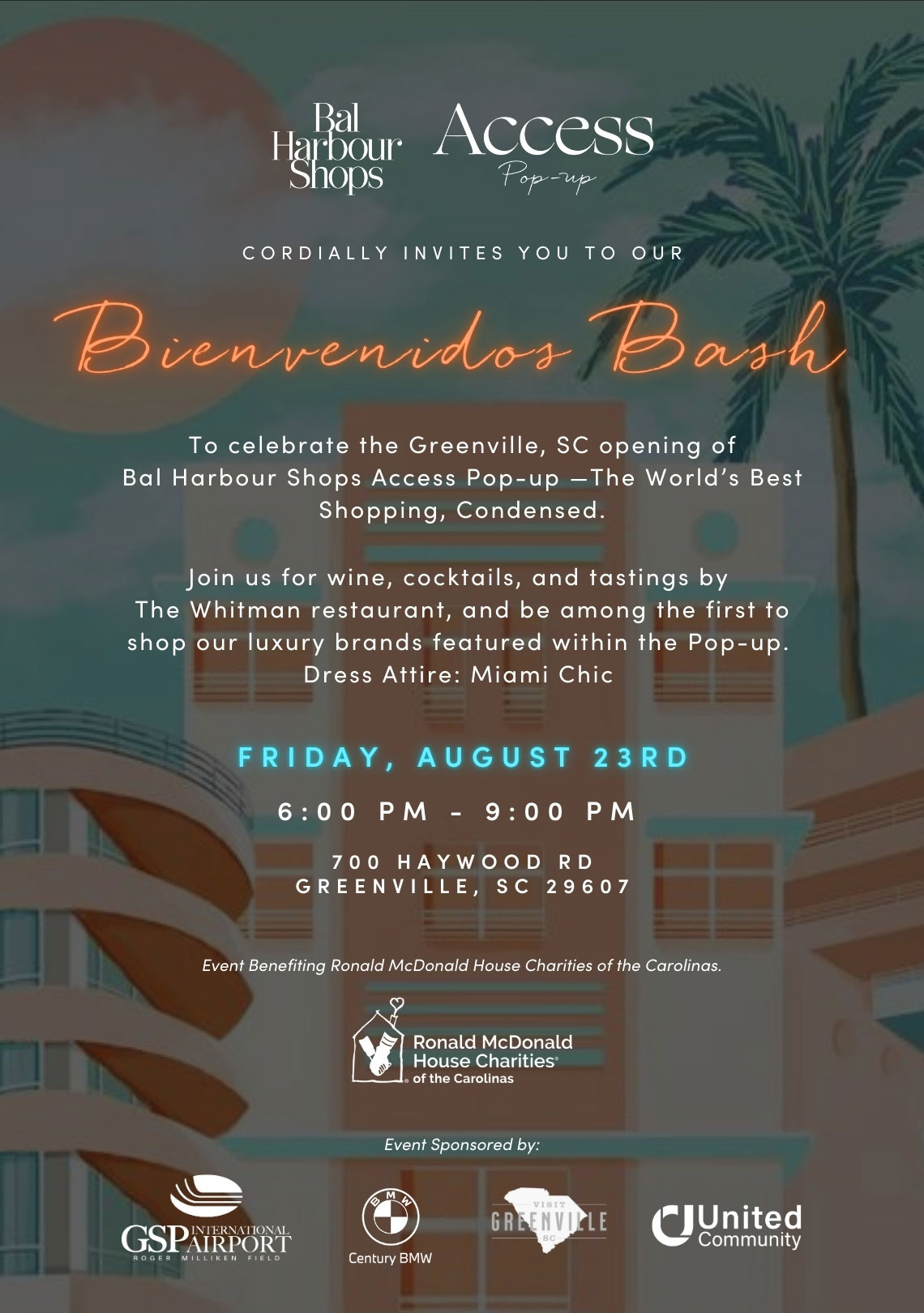 We welcome you and a guest to join us for this special invite-only reception celebrating the opening of Bal Harbour Shops Access Pop-up in Greenville, SC.